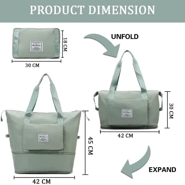 حقيبة قابلة للطي بسعة كبيرة لتخزين مختلف الأغراض الأمومة أو السفر, أو لعطلة نهاية الأسبوع، أو لحمل الأغراض الرياضية, ملائمة لجميع الفصول مصنوعة من القماش المتين وهي مقاومة للماء